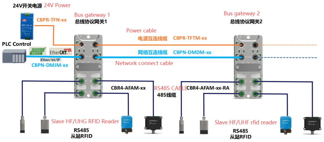 Four RFID read/write heads can be connected at the same time for independent operation;